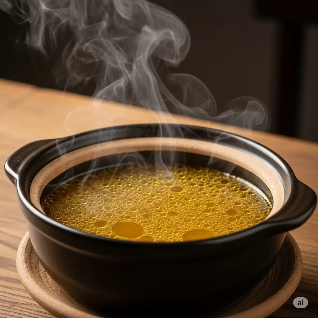 - Tạo hương vị: Sau khi nước dùng đã tương đối trong, cho tôm khô, mực nướng, hành tây nướng và củ cải trắng vào nồi. Hạ nhỏ lửa, hầm liu riu trong ít nhất 6-8 tiếng. Kinh nghiệm xương máu là tuyệt đối không đậy nắp, việc này giúp nước dùng bay hơi và cô đọng vị ngọt, đồng thời giữ được độ trong.